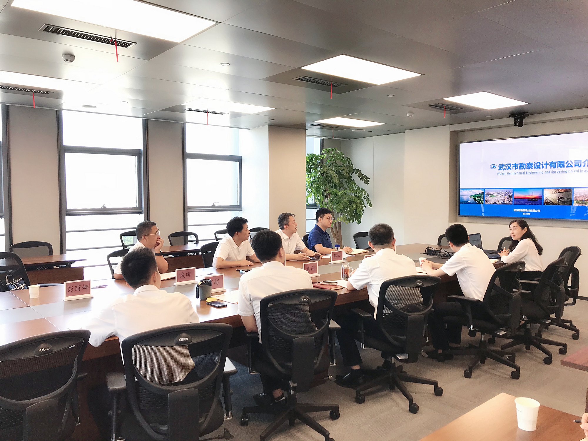 在聽取勘察公司情況介紹后,黃磊對公司一直以來提供的技術(shù)支撐及優(yōu)質(zhì)服務(wù)表示感謝。他提到,勘察公司是行業(yè)佼佼者,擁有強(qiáng)大的技術(shù)實(shí)力和人才優(yōu)勢,具備優(yōu)良的市場意識和服務(wù)品質(zhì),參與了眾多重大項(xiàng)目的勘察設(shè)計(jì)等技術(shù)服務(wù)工作,有著良好的業(yè)界口碑。他希望,勘察公司能依托自身優(yōu)勢,積極參與武漢市城市更新相關(guān)工作,共同為集團(tuán)發(fā)展和武漢城市建設(shè)出謀劃策、做出貢獻(xiàn)。